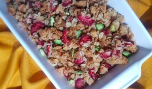 Ingredienti: 100 gr di fiocchi d’avena 80 gr riso soffiato (o altro cereale) 50 gr di sciroppo d’agave 50 gr di olio di cocco 60