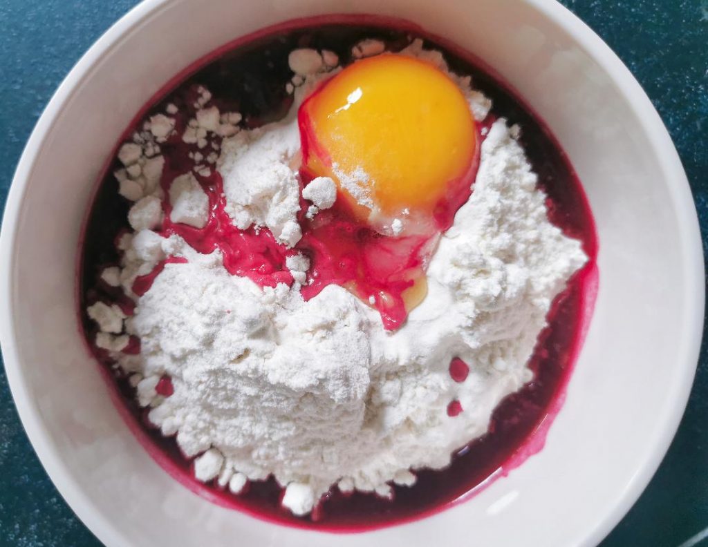 Prepara la sfoglia rosa amalgamando la farina col tuorlo, l’estratto e l’olio.