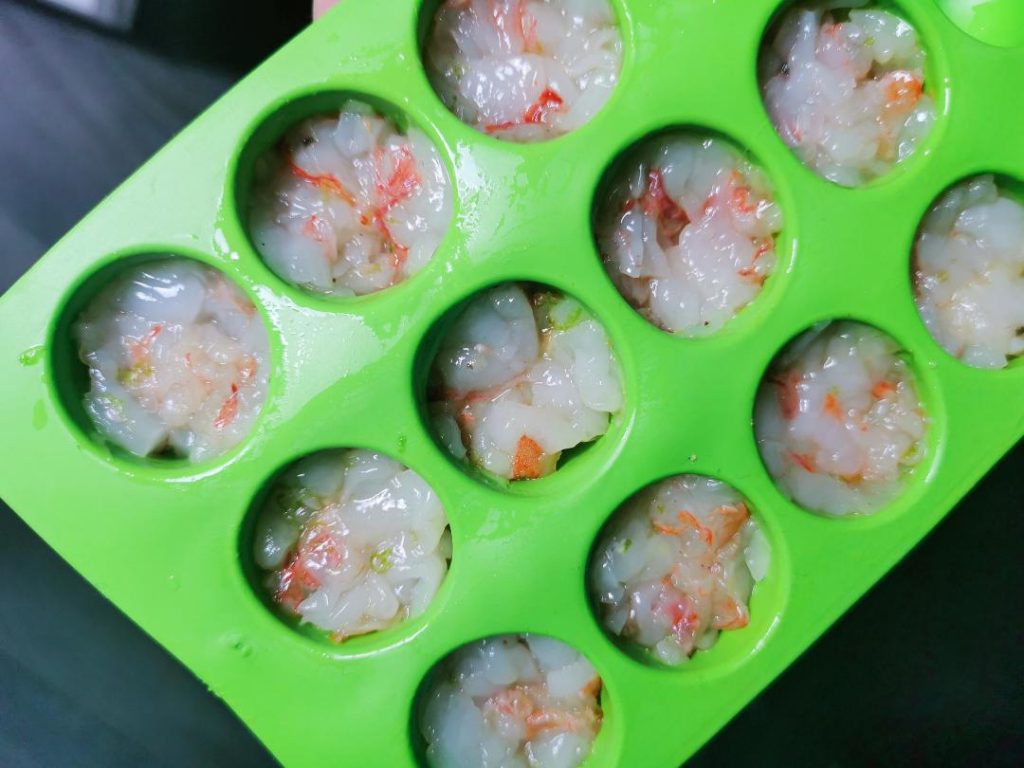 Prendi uno stampo per ghiaccio in silicone e distribuisci 1 cucchiaino colmo di tartare in ogni solco comprimendola col dorso del cucchiaio  perchè si compatti sul fondo.