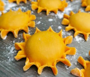 Soli di pasta fresca alle carote ripieni di arrosto d’anatra mantecati con burro profumato al timo e arancia Leggi la Ricetta »