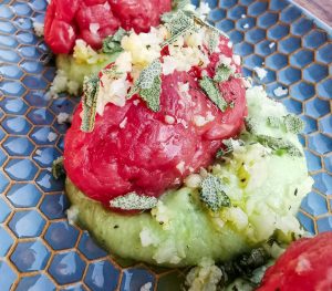 Tartare di manzo, cavolfiore in due consistenze, salvia croccante