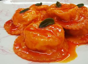 Ravioli al peperone ripieni di ricotta profumata al limone