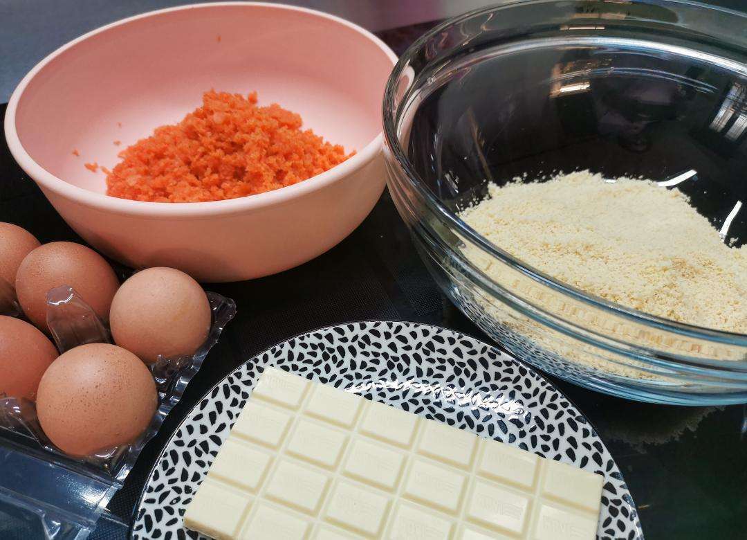Monta i tuorli con 50 gr di zucchero aiutandoti con le fruste elettriche fino a ottenere un composto chiaro. Aggiungi la scorza di limone e l’essenza di mandorla continuando ad agitare. Aggiungi la farina e il lievito setacciato. A questo punto incorpora le carote e le mandorle col cioccolato.